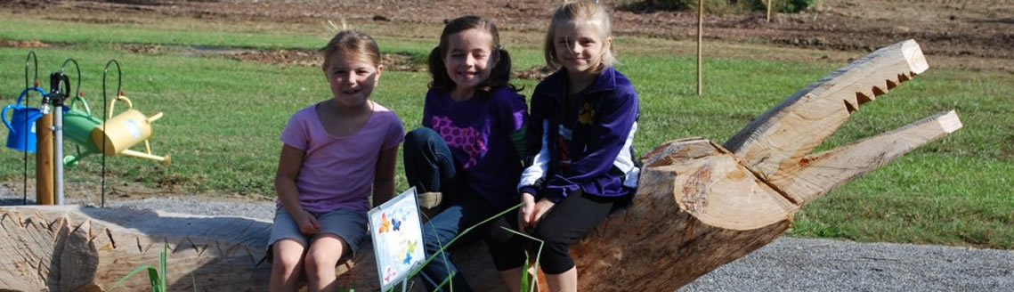 Visiting children are encouraged to touch, feel, smell and enjoy the garden space. You’ll probably want to bring a camera so you can take your picture on a 15-foot alligator or capture a butterfly chrysalis ever so slightly wiggling! Children should also bring an open mind and belly. We have many different types of fruit and vegetables planted in the garden. Depending on the season, various edible plants will be ready for harvest. Children are encouraged to snap off a tomato, pick a piece of broccoli, pull a carrot or radish and take a bite. We really want to encourage a wider palate in our youth!