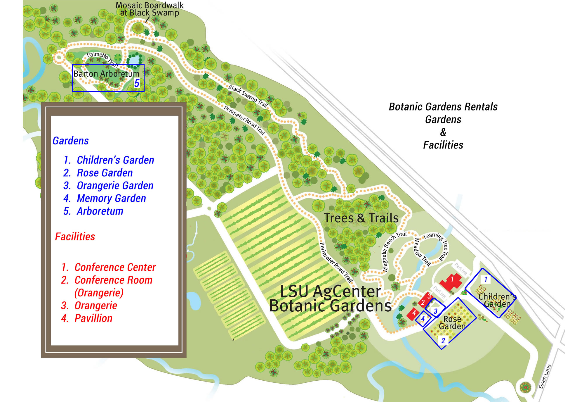 The LSU AgCenter Botanic Gardens at Burden offers 2 different locations for meetings.