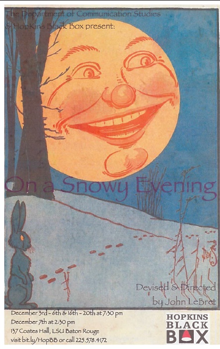 The history of the HopKins Black Box is a history of many people dedicated to experimentation in and through performance. First and foremost is Dr. Mary Frances HopKins, who secured the space for us in 1992 and for whom it was officially named in a gala event in 2002. Second are the faculty and students who developed and cared for the tradition of live performance at LSU prior to 1992. While we haven't the documents or memory to acknowledge their contributions specifically, we hope that the archives pay tribute to them in the spirit of remembering. Third are the directors, performers, and shows since 1992 that have slipped our memory especially in the early years when making or saving documents was superceded by purchasing a fire door for safety or risers for seating. We apologize for the gaps and urge any readers who can help us fill them, however partially, to contact us.
