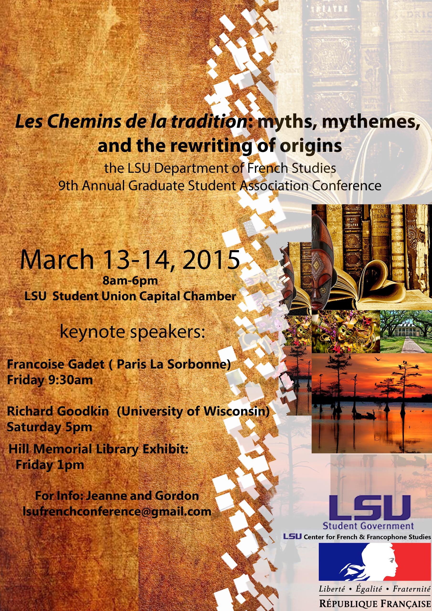 The Department of French Studies at LSU is excited to announce the 2026 Graduate Conference, an inspiring event designed to bring together emerging scholars from around the world to explore the richness and diversity of French studies, literature, culture and thought. This year's theme : LITERATURE, WHAT FOR?,  invites participants to engage in meaningful discussions and share cutting-edge research about the place of French literature in this contemporary world. We seek innovative scholarly works interrogating the place of literature in public life, education and everyday experience, especially at a time where artificial intelligence is gradually reshaping reading, writing and learning. What does literature still offer and why does it still matter ? Join us as we examine literature's power in shaping perspective, values and creative thinking. Click this link for more information.